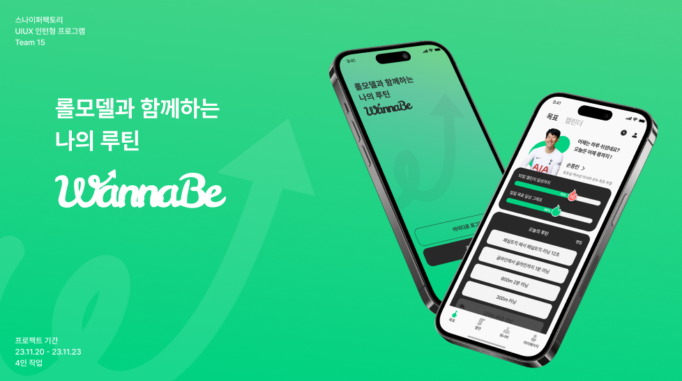주요기능은 목표(홈), 명언, 워너비(랭킹시스템), 마이페이지 로 좁혀져 하단 탭바에 들어가고