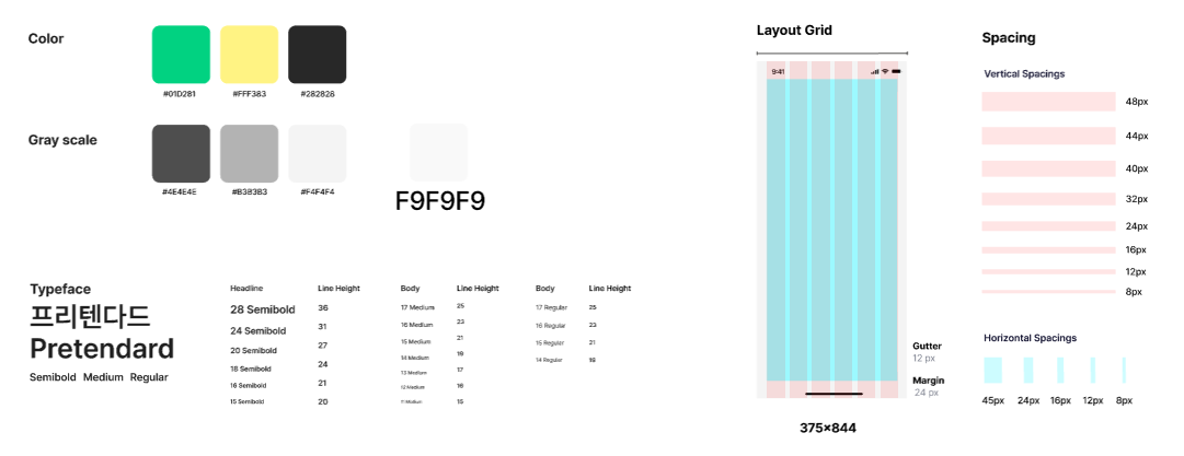 어플의 메인무드를 잡기위해 컬러에대한 논의도 이어졌는데 그린과 블랙 그리고 옐로우의 조합이 선택되었다.